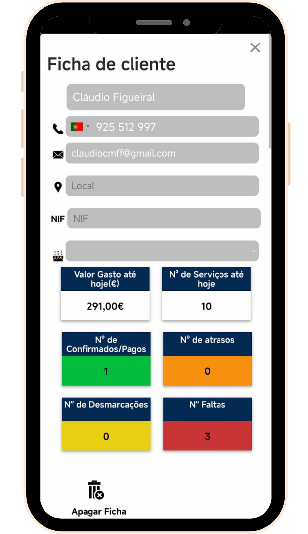 Saiba quantas vezes cada cliente faltou, atrasou-se ou desmarcou à última da hora