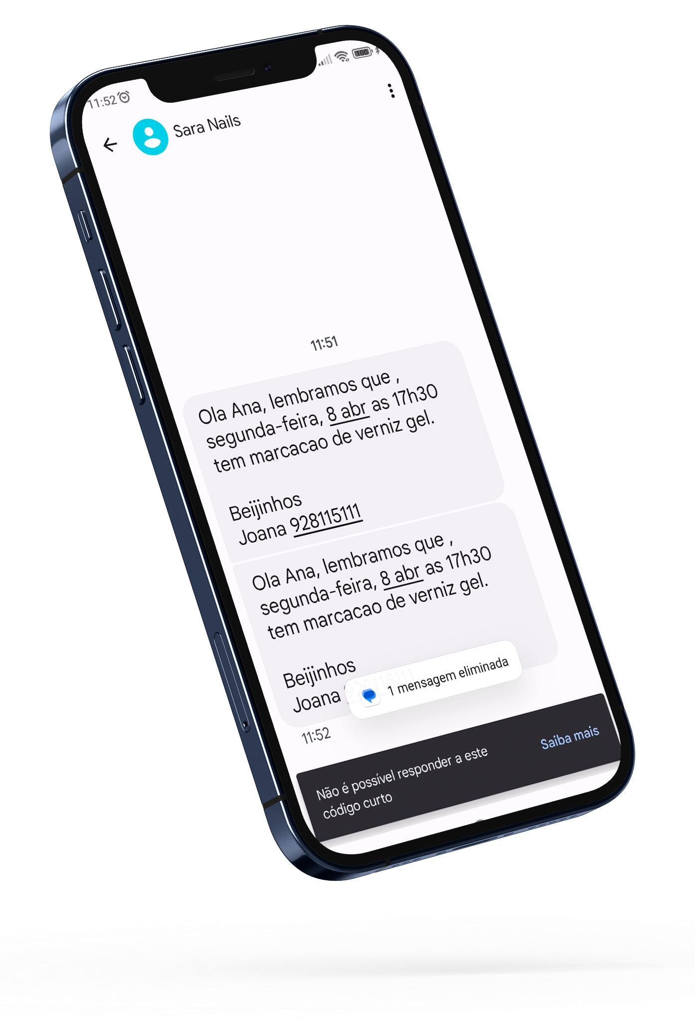 Escolha a hora e quantos dias de antecedência quer enviar e o sistema envia sozinho as SMS a lembrar todos os clientes das suas marcações